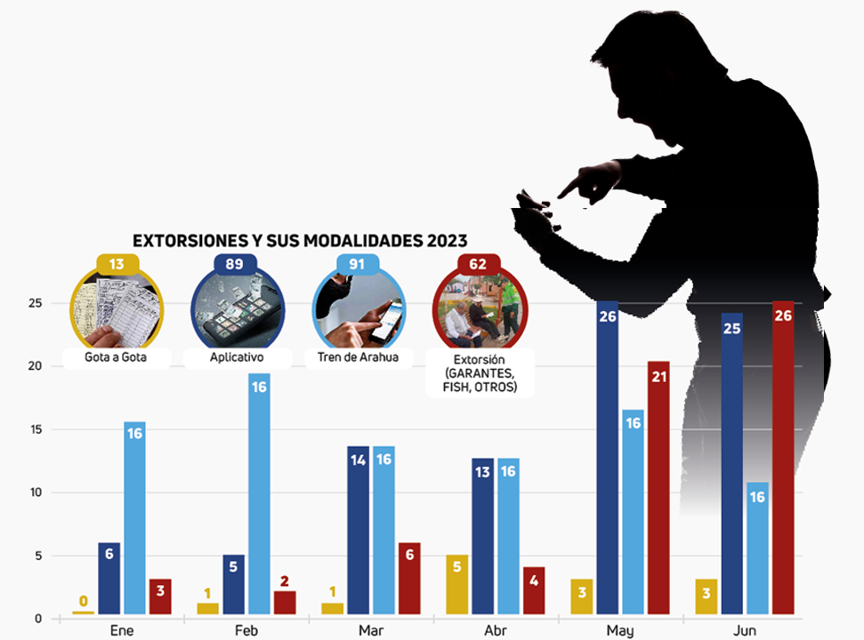 GOTA A GOTA. Por otro lado,  en abril registró mayores índices. La Policía señaló que de un préstamo, los intereses aumentan hasta en 40 %. Perpetrados por ciudadanos extranjeros y peruanos. Los efectivos de la Divincri han desarticulado bandas delictivas, con la frase “Policía y Comunidad Juntos Contra la Extorsión”.