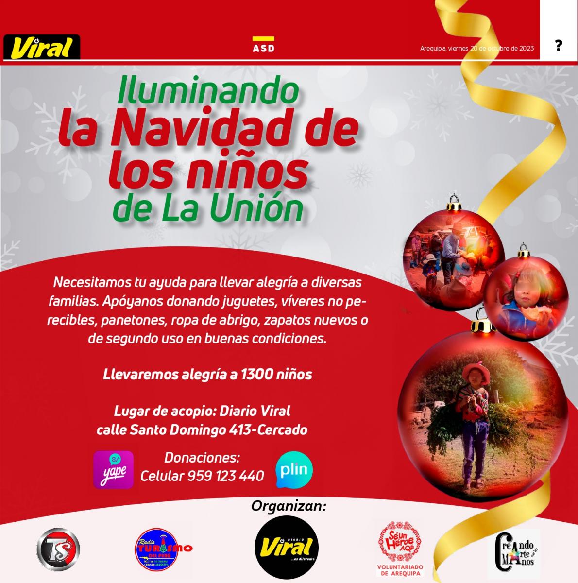 ¡Sobrinos, sobrinas! Nos ponemos en modo navideño ????????? y viviremos la fiesta de la #Navidad llevando alegria a 1300 niños de la provincia de La Unión.