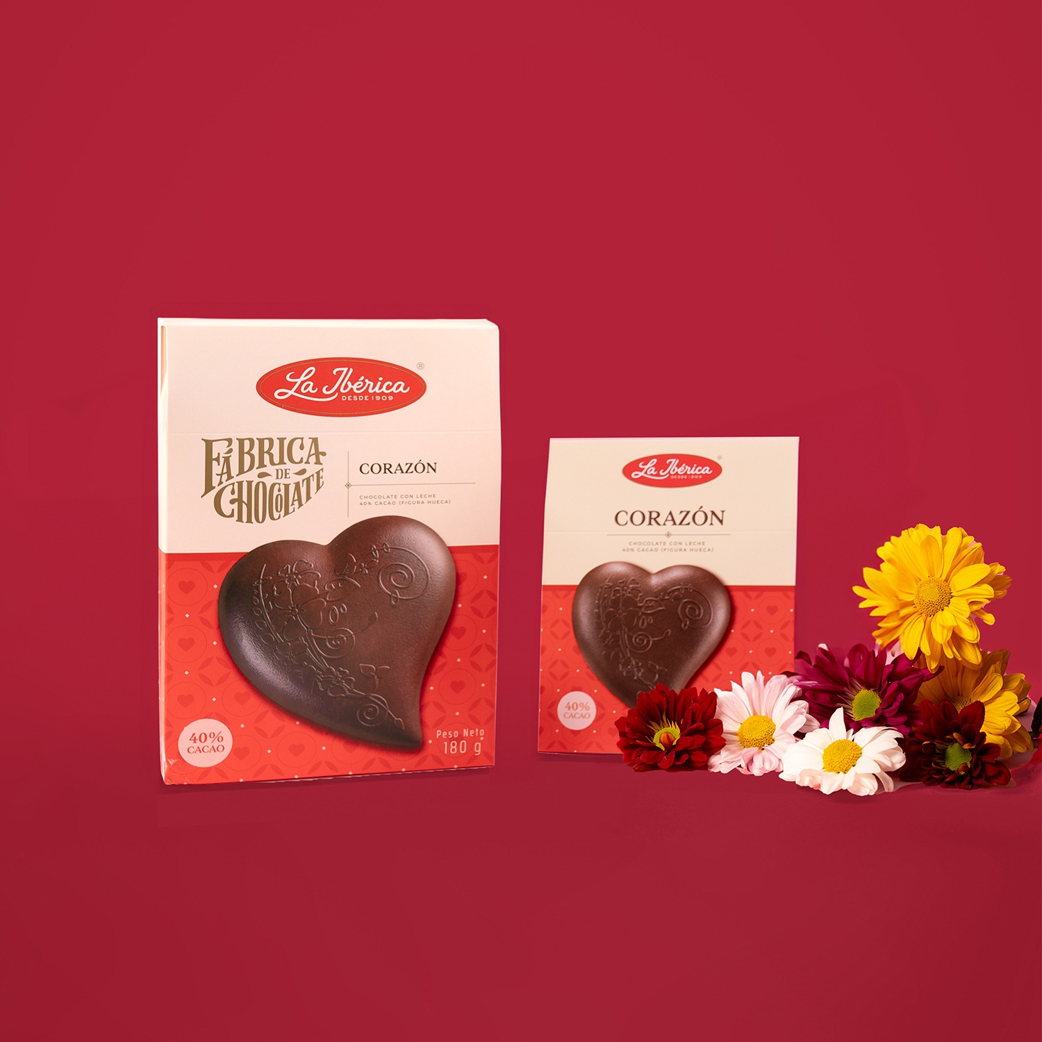 Para quienes buscan un gesto más delicado, los Corazones de Chocolate con leche 40% cacao vienen en presentaciones de 35 g, 80 g, 140 g y 180 g, ideales para expresar cariño en distintos tamaños.