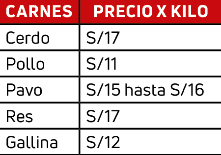 La carne de cerdo a S/17 el kilo y va variando de acuerdo a la porción. (Ver lista de precios)