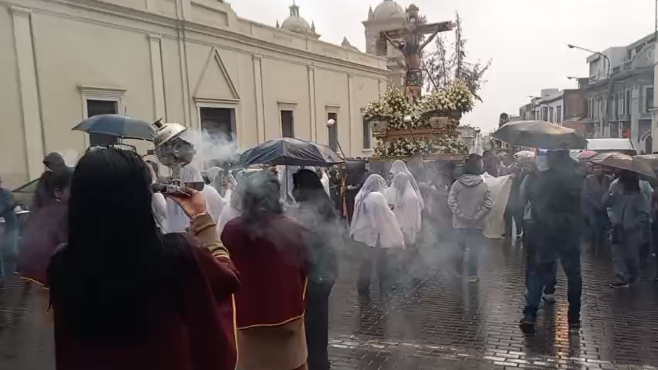 Lunes Santo: procesión del Cristo de la Caridad se realizó a pesar de la lluvia
