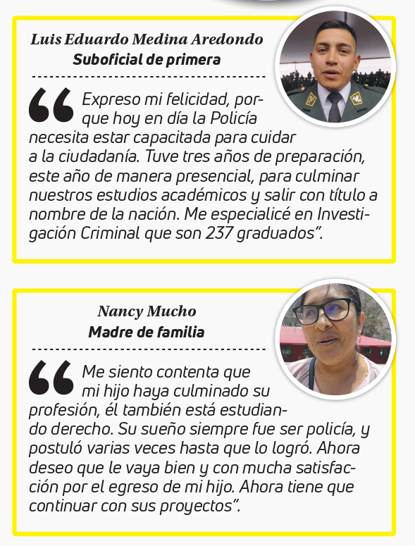 Solemnes, bien uniformados y muy satisfechos de haber culminado una etapa más en su formación académica, 321 efectivos policiales recibieron su graduación como suboficiales de tercera, después de una preparación ardua, en la  Escuela Técnica Superior de la PNP Charcani Arequipa.