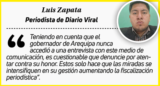 Querellar un objetivo y verídico trabajo periodístico que tiene como misión informar y crear opinión entre la población, es un evidente atentado contra la libertad de expresión y prensa, así lo entendieron los 4 periodistas arequipeños denunciados por el gobernador regional, Rohel Sánchez Sánchez.