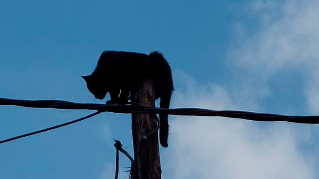 Un gatito pasó tres días sin comer y bajo la lluvia encima de un poste de madera ubicado en el sector de Mateo Pumacahua manzana K lote 20 del distrito de Miraflores.