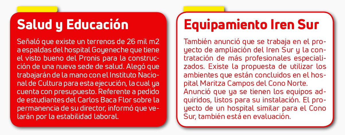“No se incrementaría un presupuesto para esta gerencia, se trabajará en base al retiro de la Gerencia Regional de Supervisión de Proyectos. Tenemos opinión favorable del área de Presupuesto y Desarrollo Social”, señaló.