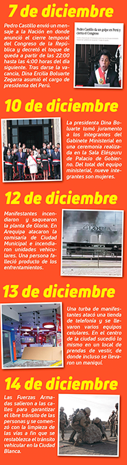 Arequipa. Las protestas a nivel nacional, pidiendo la renuncia de la presidenta Dina Boluarte y el cierre del Congreso, no han sido ajenas a nuestra región. Por el contrario, Arequipa es una de las zonas más convulsionadas en la que se registraron atentados a empresas privadas e instituciones públicas causando zozobra en los pobladores.