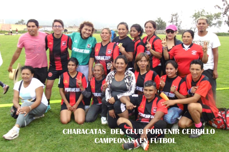 FÚTBOL DAMAS. Relación de campeonas en fútbol dama del club social Porvenir Cerrillo: Mónica y Loreta Benavides, Leslie Vargas, Zulma Núñez, Lisbeth Linares, Adaní Portilla, Patricia Chávez, Martha y Kateríne Pampa, Norka Bejarano, Claudia Linares, Alejandra Carazas, Patricia Lajo, Sanadí Peraltay Cinthia Rado. Entrenadora Yarifa Lajo. Hay que señalar, la segunda ubicación fue para Unión Characato.