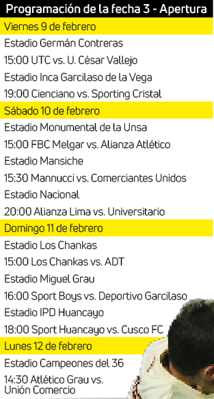 La Liga de Fútbol Profesional publicó en su plataforma social  la programación de la tercera fecha del torneo apertura, que tiene como duelo estelar el clásico del fútbol peruano.