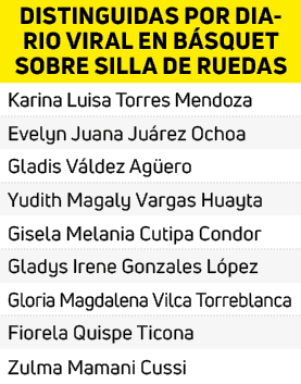 Arequipa tiene talentosas paradeportistas en diferentes disciplinas, uno de los grupos reconocidos por Diario Viral fue del equipo de damas que practican básquet sobre sillas de ruedas, quienes no tienen límites para que jueguen su deporte favorito, ellas se someten a rigurosos entrenamientos los fines de semana en los cuatro clubes que existen para estar en las mejores condiciones físicas y técnicas para competir en los torneos nacionales o internacionales donde deban asistir luciendo no solo los colores de su patria.