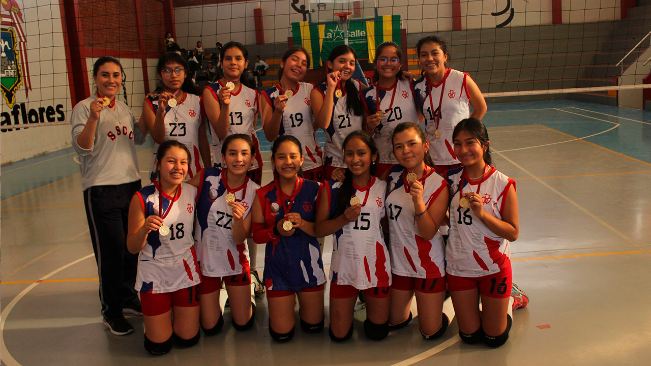 Las matadoras del colegio De los Sagrados Corazones se elevaron a lo más alto y tocaron la gloria en el vóleibol femenino de la categoría menores (13 y 14 años) de los Juegos Deportivos del Consorcio de Colegios Católicos de Arequipa (Codecoa).