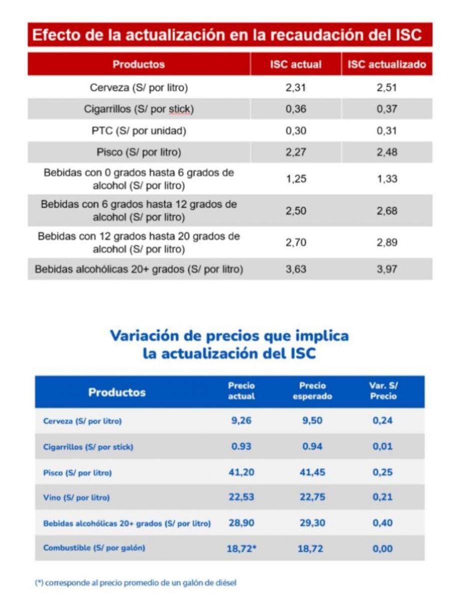 Según la norma publicada, subirá el impuesto a los cigarros, la cerveza, el vino, el pisco (y otras bebidas con alto % de alcohol. Ver cuadro).