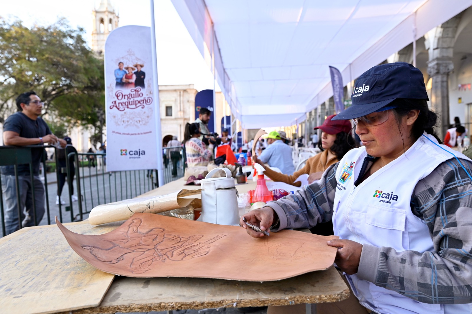 La plaza de Armas de Arequipa se convirtió en un verdadero taller al aire libre durante tres días de celebración y creatividad, con la realización del XXII Concurso de Tallado en Sillar, XI Concurso de Fierro Forjado, VIII Concurso de Repujado en Cobre y VIII Concurso de Repujado en Cuero.