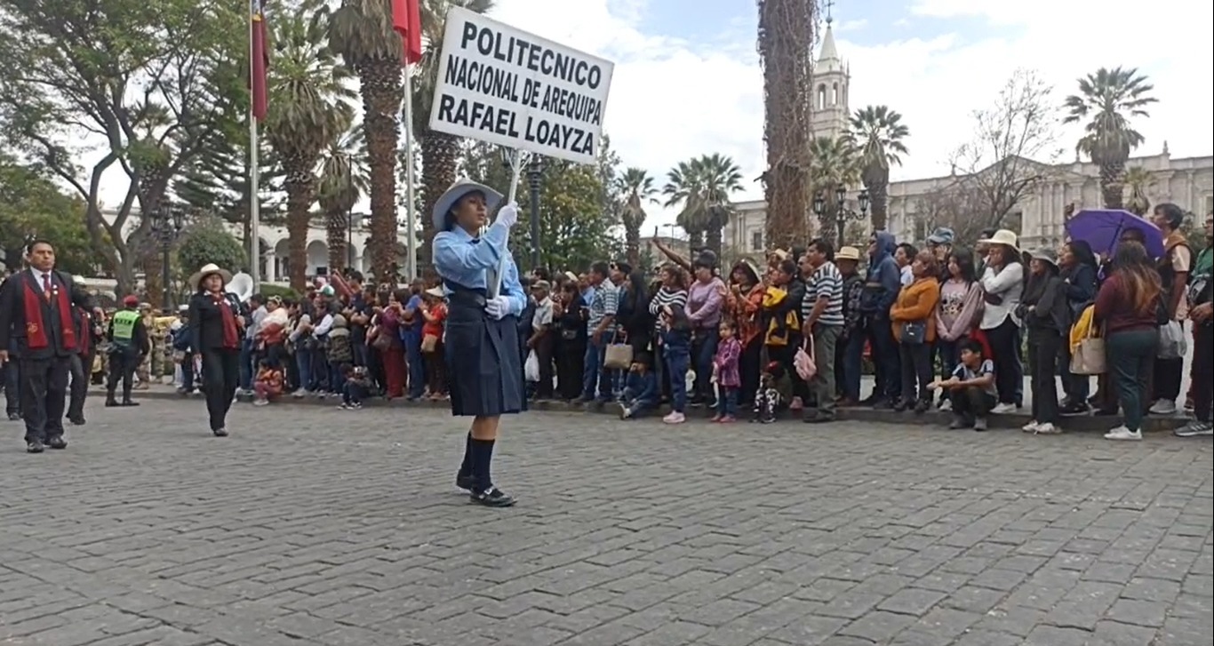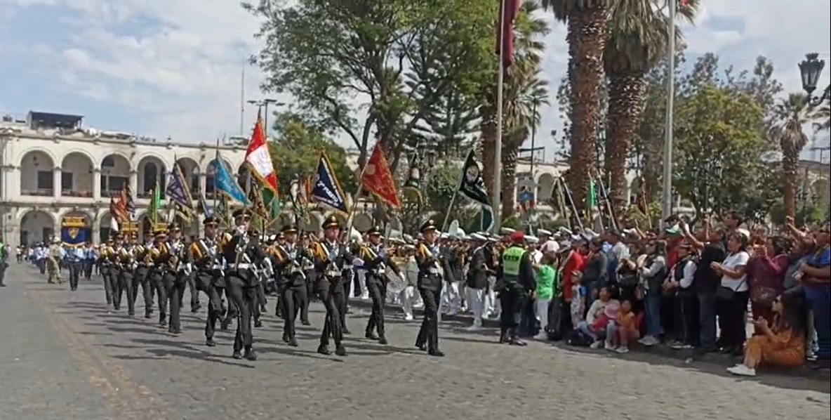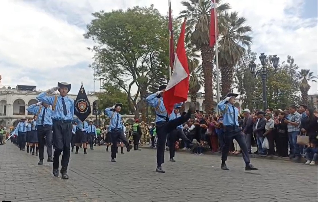 Es por ello que este domingo 1 de octubre del 2023, docentes, alumnos, personal administrativo, miembros de instituciones públicas y privadas, así como de periodistas de Arequipa desfilaron por el estrado oficialubicado frente a Portal de la Municipalidad Provincial de Arequipa en la plaza de Armas de la Ciudad Blanca, luego de haber realizado el izamiento del máximo símbolo patria: la bandera del Perú.