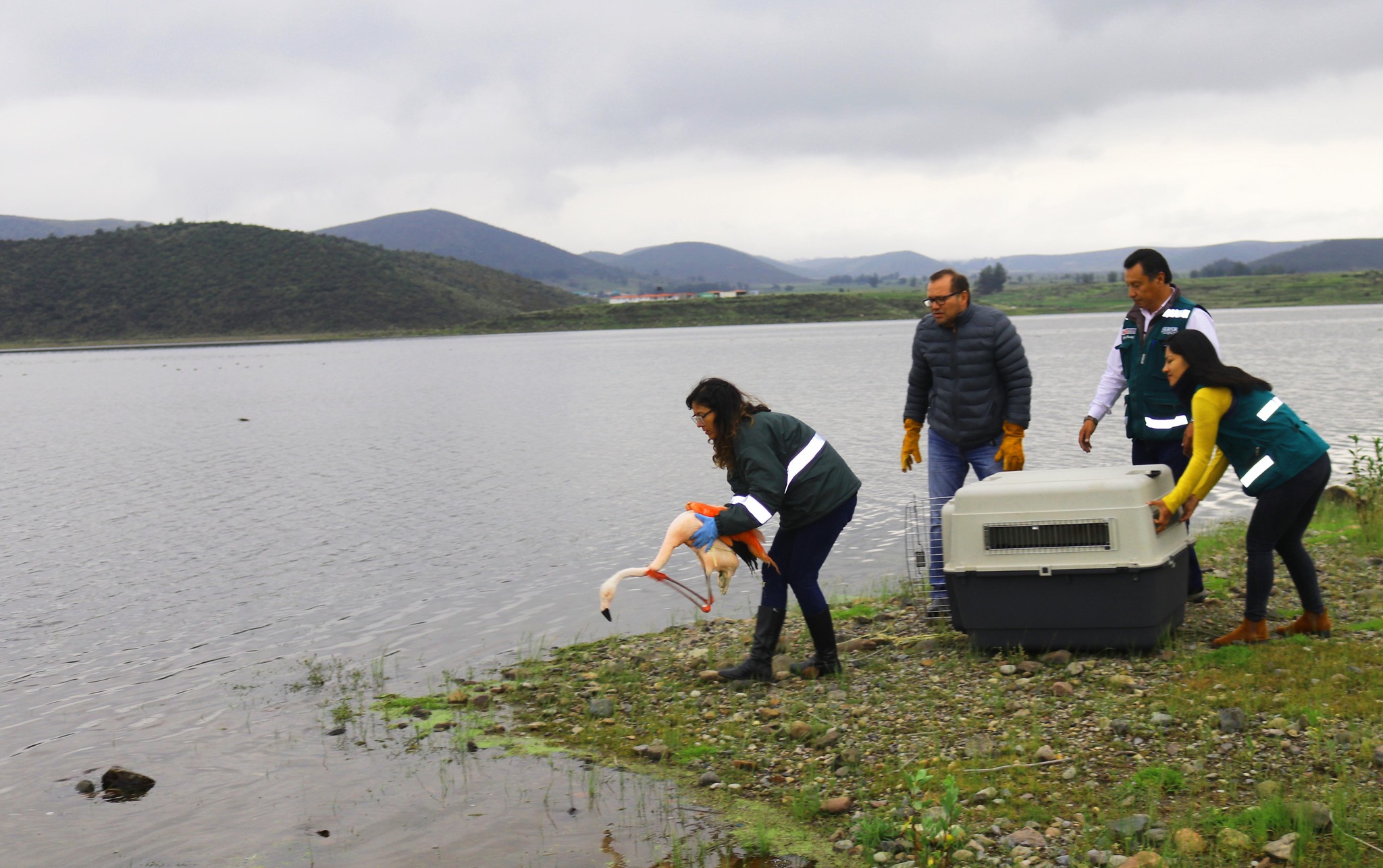 Tras favorable recuperación, parihuana que causó gran sorpresa al aparecer en medio de la Asociación Embajada de Japón para descansar, fue liberada por equipo del SERFOR en represa del distrito de Polobaya, donde esta especie suele descansar.