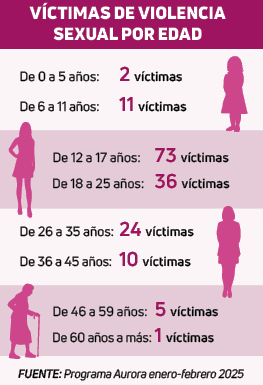 En la Ciudad Blanca, la violencia sexual impacta con mayor crudeza a adolescentes de 12 a 17 años, con 73 víctimas registradas, seguidas por mujeres de 18 a 25 años, donde se reportan 36 casos.