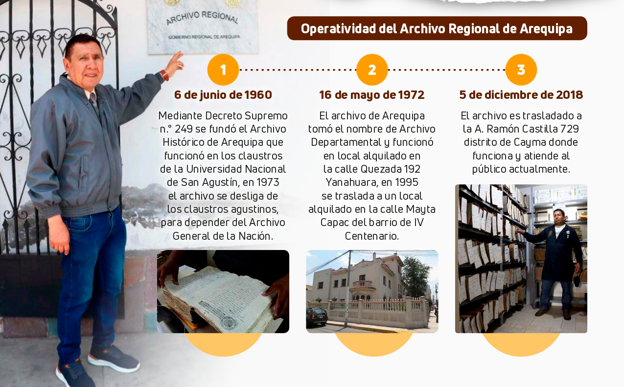 “La memoria de Arequipa está en riesgo de perderse, si no cuidamos nuestra historia cometeremos los mismos errores del pasado. Los documentos que tenemos en el archivo regional, no merecen estar en un lugar como este, donde la filtración de agua por lluvias nos ataca y los espacios son muy cortos, ya que nos situamos en una casa. Tenemos más de 100 mil textos y el 40 % está por perder su información, se necesita el restaurado”, señaló.