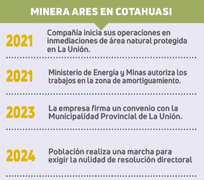 Desde hace cuatro años, la población de la provincia de La Unión mostró su rechazo hacia la compañía minera Ares S.A.C. que forma parte del grupo Hochschild. Señala que la empresa realiza sus operaciones y contamina los recursos naturales de la zona de amortiguamiento de la reserva paisajística subcuenca de Cotahuasi.