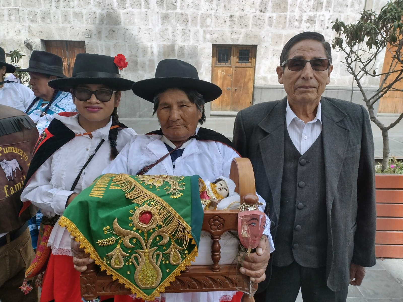 Para ello escogieron sus mejores trajes típicos y así con la imagen del niño Jesús recorrieron la plaza de armas con cánticos y bailes donde resaltaron los zapateos que retumbaban acorde con las notas del violín.