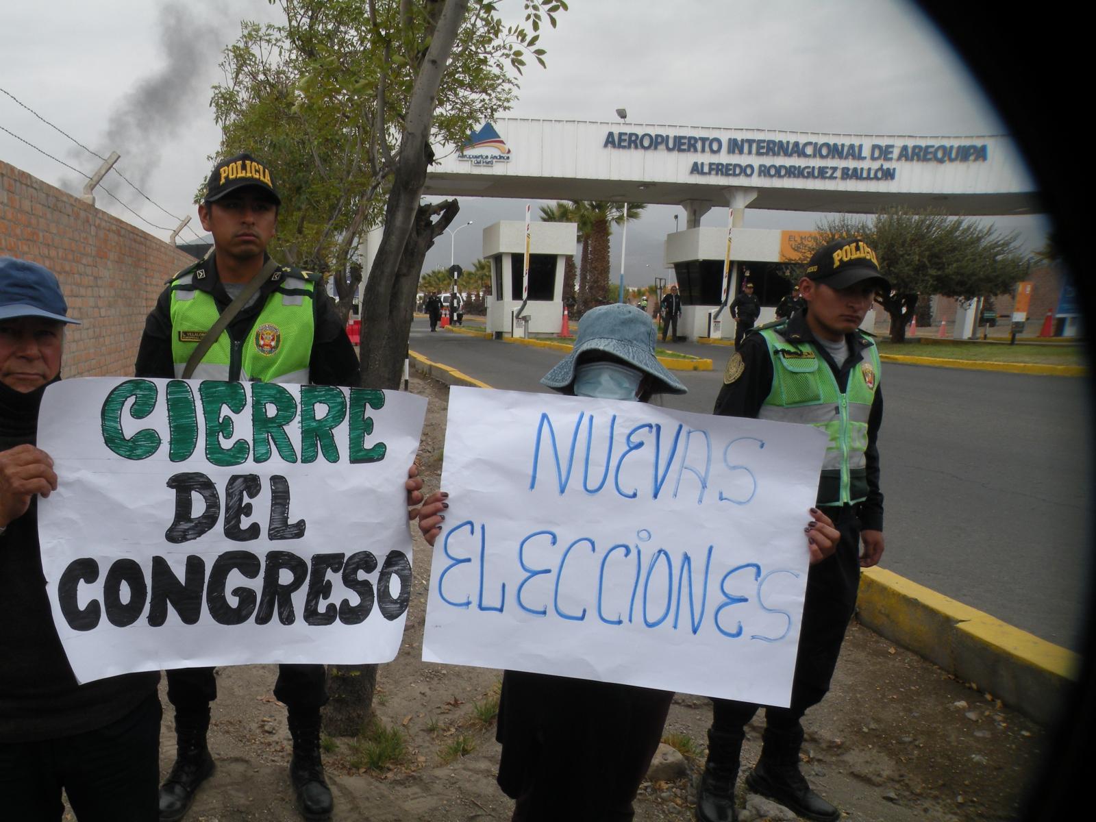 llevan niños y adultos mayores. Sin importar la edad ni la condición, varios adultos mayores, madres con hijos en brazos e incluso gestantes se unieron a la protesta en varios puntos a lo largo de la vía Arequipa – Yura, arriesgando su seguridad, se observó que la Policía cuidaba de evitar conflictos.