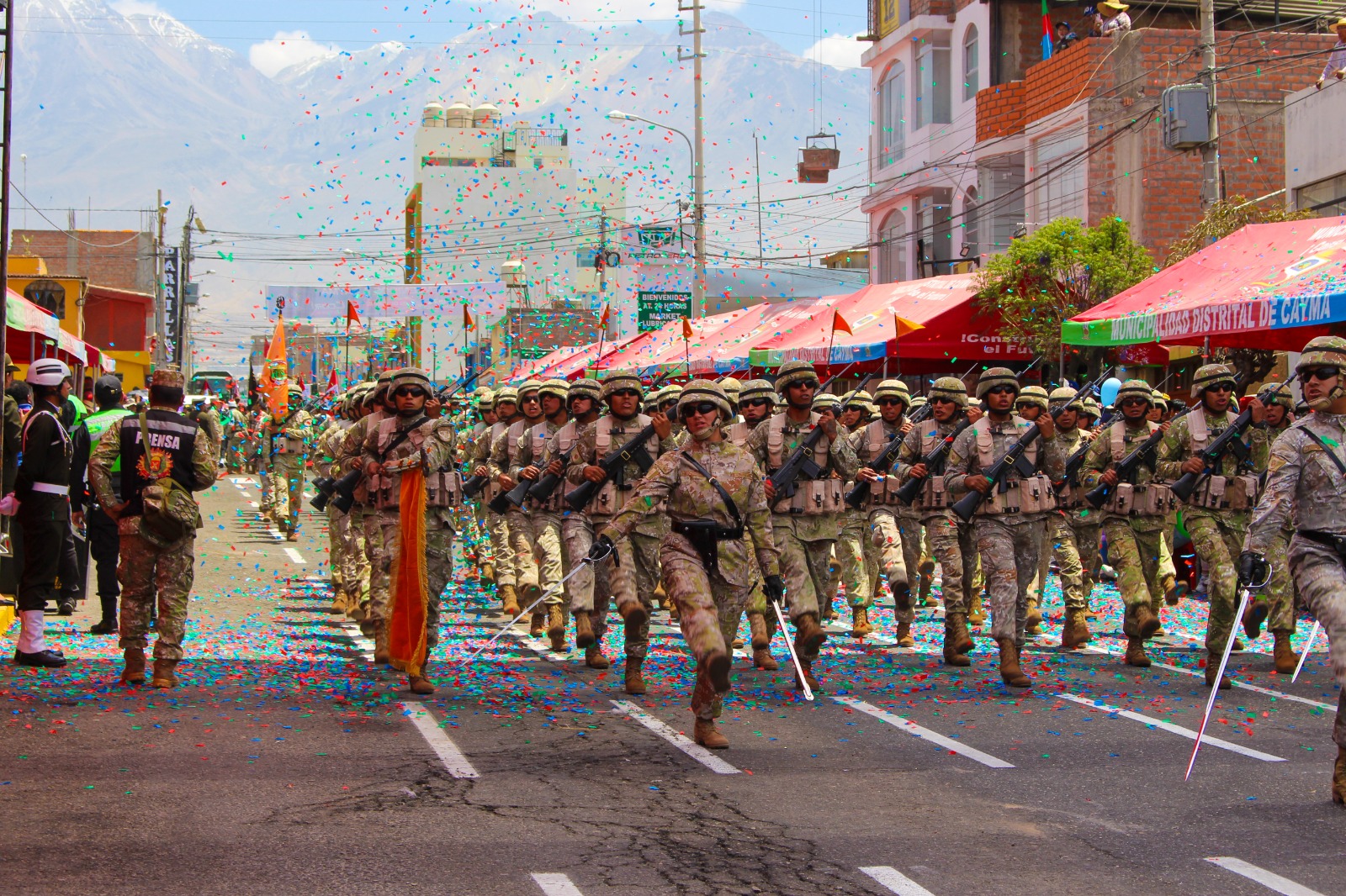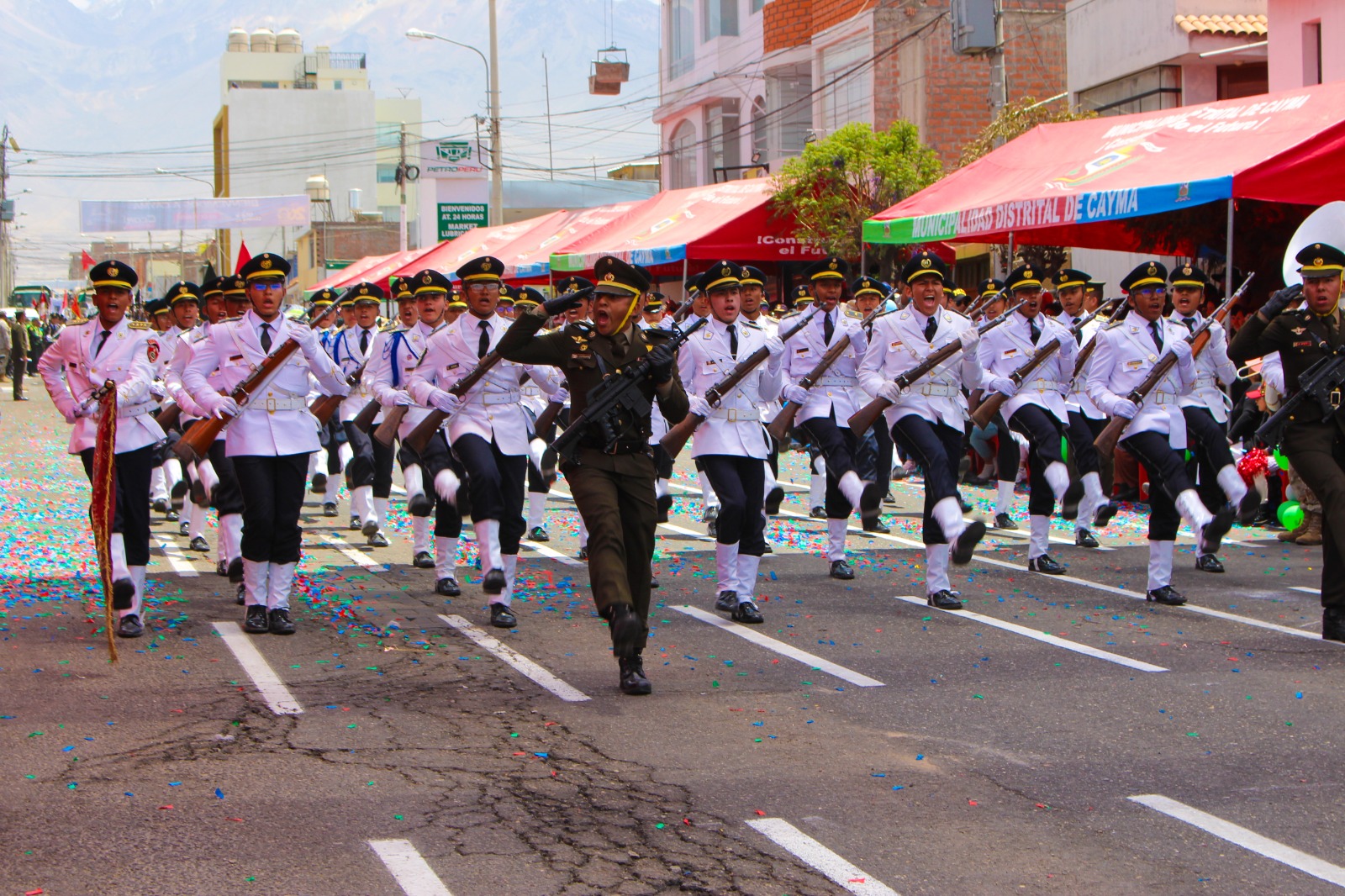 La capacidad y fortaleza de nuestras Fuerzas Armadas se pudo apreciar durante el desfile cívico y parada militar desarrollado en la Plaza de Francisco Bolognesi en conmemoración del Bicentenario de creación política del distrito de Cayma, a la que asistieron cientos de espectadores y las principales autoridades de la Región.