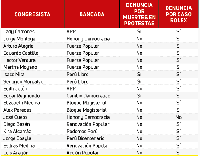 Mientras que la organización Amnistía Internacional concluyó que la presidenta Dina Boluarte podría ser penalmente responsable por las muertes en las protestas de finales de 2022 e inicios de 2023, los congresistas no aprobaron admitir a trámite la denuncia interpuesta por la exfiscal de la nación, Patricia Benavides, en noviembre del año pasado, cuando acusó a la mandataria por homicidio calificado.
