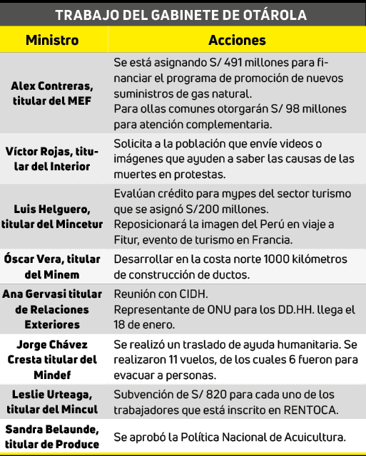 MEDIDAS. En la conferencia todo su gabinete expuso las medidas y proyectos que están trabajando de acuerdo a su sector. Otárola confirmó que se priorizará tres proyectos de envergadura en los gobiernos regionales.