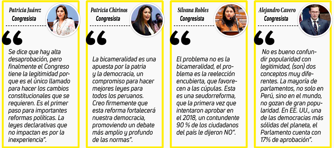 Con una amplia mayoría de votos, 93 a favor, se aprobó retornar a la bicameralidad y la reelección de congresistas. Es decir, el Perú tendría dos cámaras, una de 130 diputados y la otra de 30 senadores.