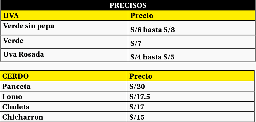El kilo de cerdo está desde S/16 y la uva a S/8