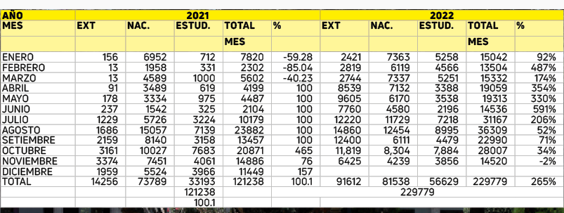 Dicha cifra presenta una diferencia de solo 58 mil turistas aproximadamente, en comparación del 2019, año sin presencia del coronavirus donde los flujos se desarrollaban de manera normal.