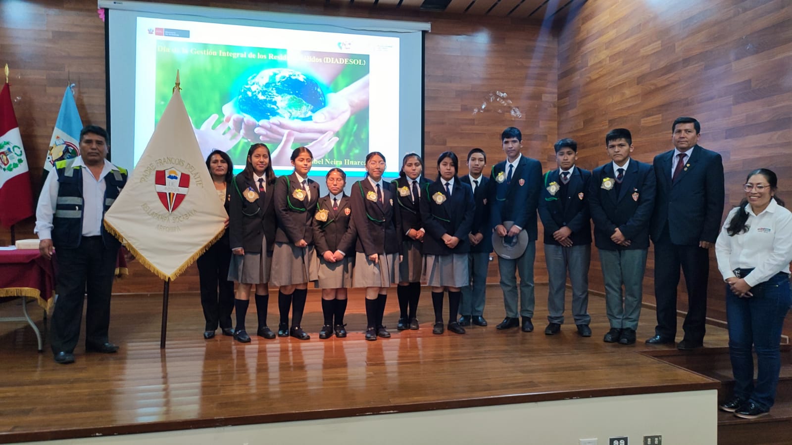 Antes del acto de juramentacíon que estuvo a cargo de representantes del Ministerio del Ambiente y de la Municipalidad de Socabaya, los estudiantes junto a sus docentes participaron de la ponencia "DIADESOL" expuesta por la especialista Karina Guevara del MINAM quien sensibilizó a los presentes sobre el tema de residuos sólidos.